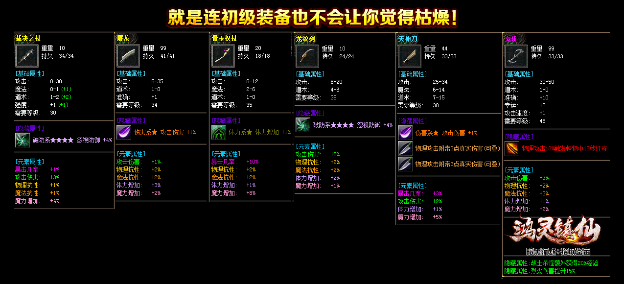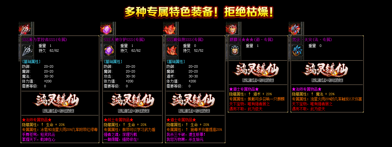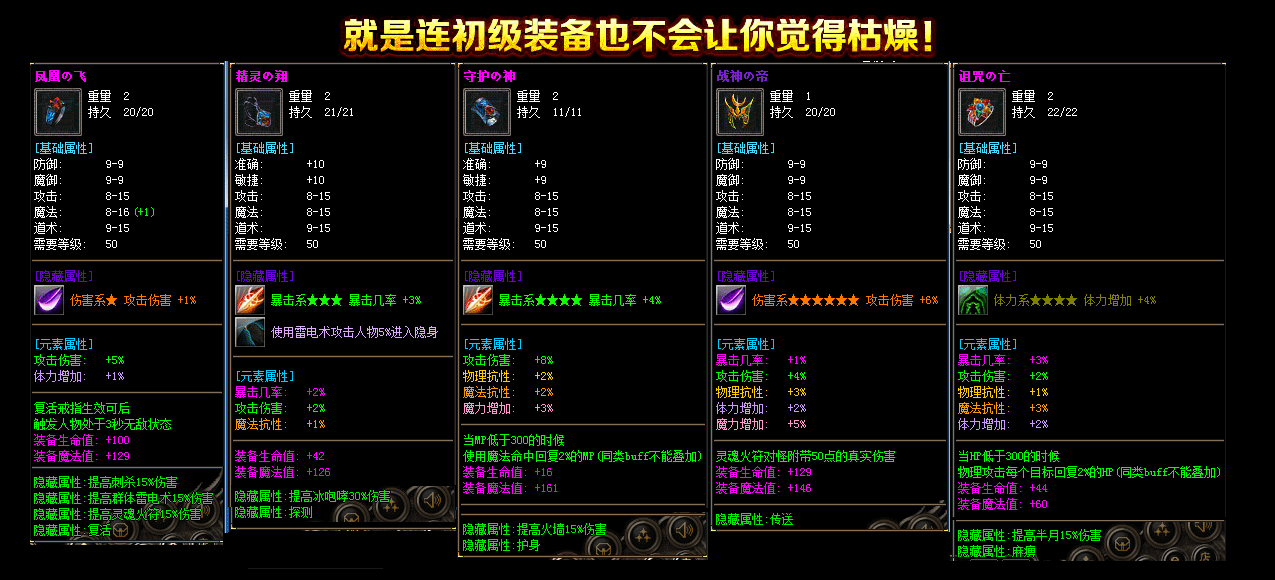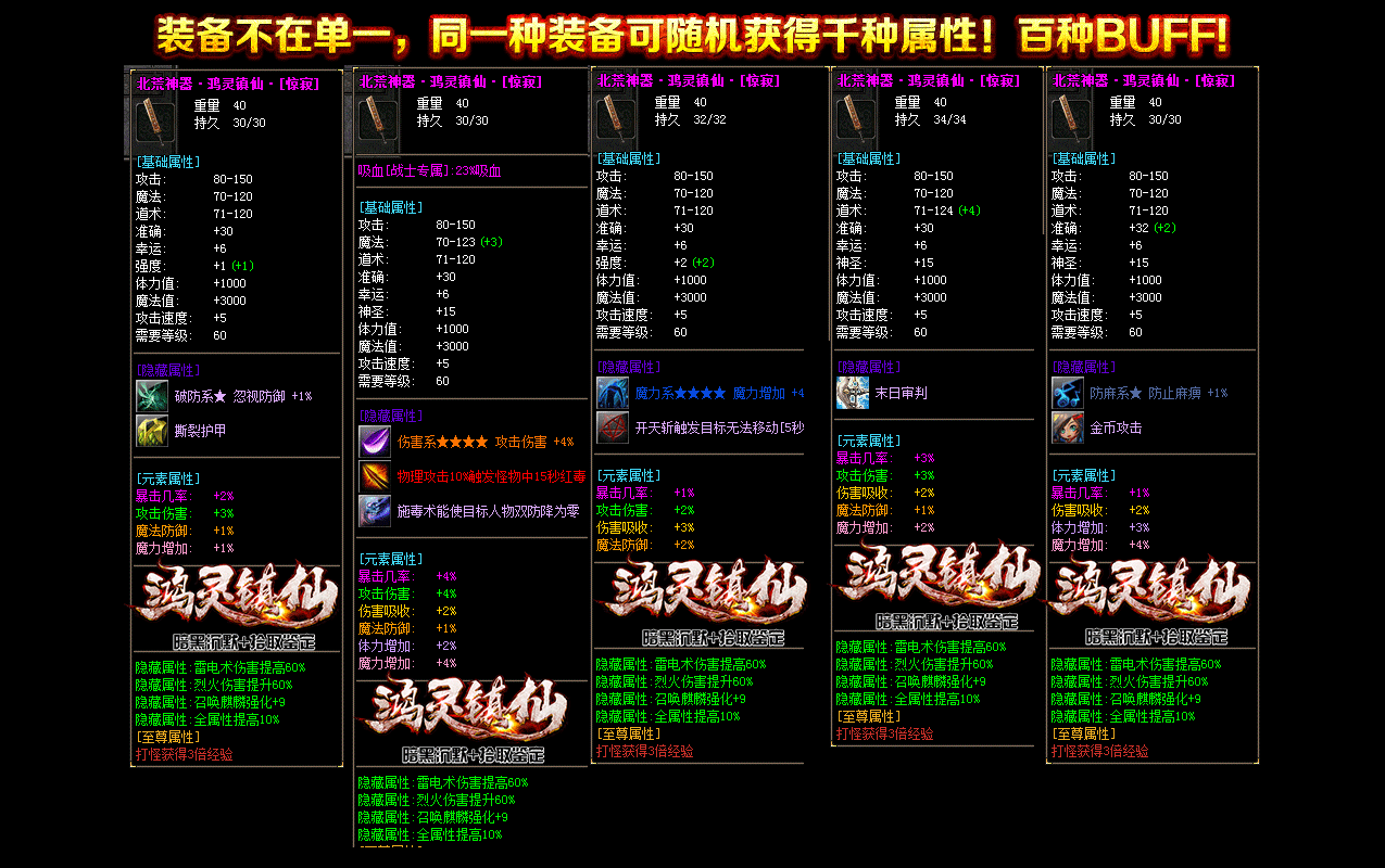 所有装备属性不带重样的,独家定制BUFF脚本